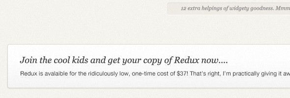 注意觀察Redux暗色背景上的淺色文字,你會發(fā)現它們都被添加上了投影效果?,F在我們可以使用CSS3中的text-shadow屬性來完成文字的投影 設計,代替了在Photoshop中完成此項工作。而且使用CSS3來給文字添加陰影自由度更高,在瀏覽器支持的情況下,你可以給任意文字添加你想要的陰 影效果。當然IE8以下版本的瀏覽器是不支持此項屬性的,這是我們在設計中需要注意的地方。另外,和前面提到的其它設計細節(jié)一樣,陰影的效果也要足夠柔 和,不可過于強烈,不然很容易讓整個設計看起來有一種臟臟的感覺,顯得不夠精致。